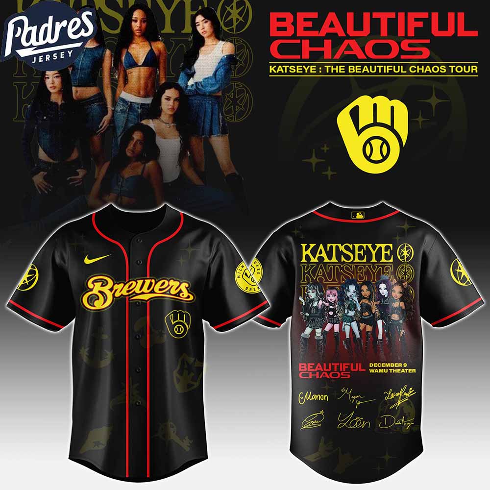 Introducing our Milwaukee Brewers MLB x Katseye The Beautiful Chaos Tour Custom Baseball Jersey :