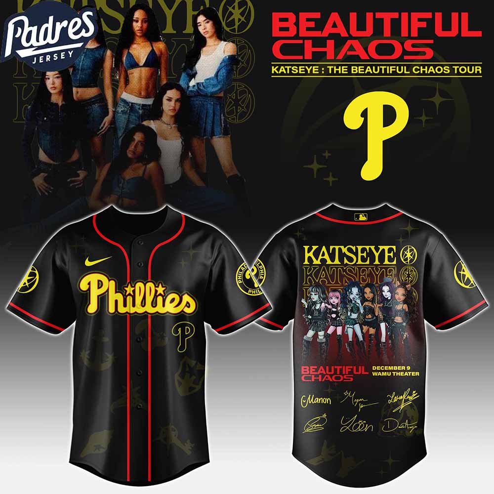 Introducing our Philadelphia Phillies MLB x Katseye The Beautiful Chaos Tour Custom Baseball Jersey :